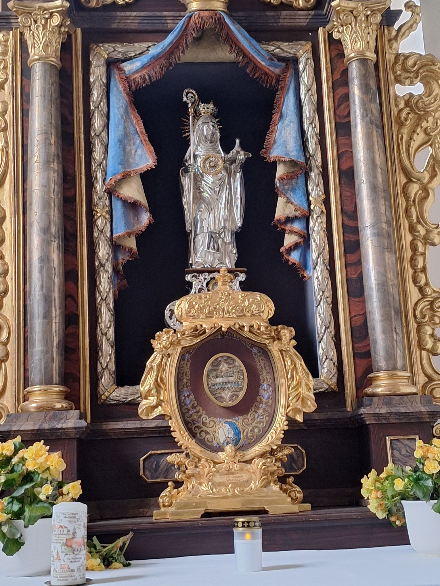 Der Heiligen ist auch die Walburgiskapelle im linken Seitentralt der Kirche geweiht. Der frommen Frau aus dem Mittelalter schreibt man dort  übrigens auch die „glückliche Errettung der Stadt aus schwerer Kriegsnot“ zu, bei der der Einmarsch der US-Truppen glimpflicher ablief als nach dem ursprünglichen Widerstand deutscher Truppen, die sich dort verschanzt hatten, zu erwarten war. Aus diesem Grund wird noch heute jedes Jahr am 24. April (dem Jahrestag dieses Ereignisses) oder dem nächsten darauffolgenden freien Tag eine feierliche Dankmesse abgehalten.